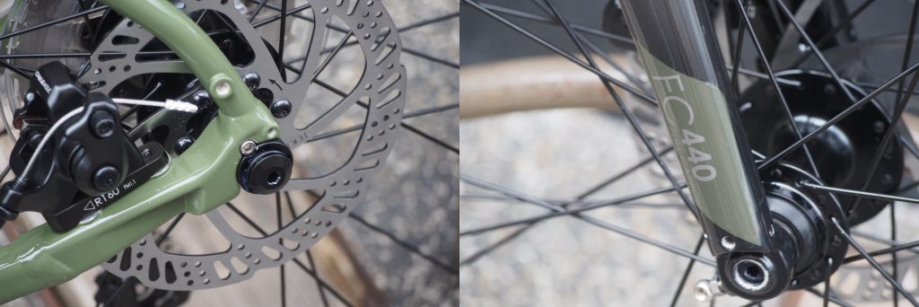 転がりの中心となる車輪軸には12mmスルーアクスルが採用。車軸の径を太くする事により捻じれを抑制し強度を上げ推進力に置き換えます。