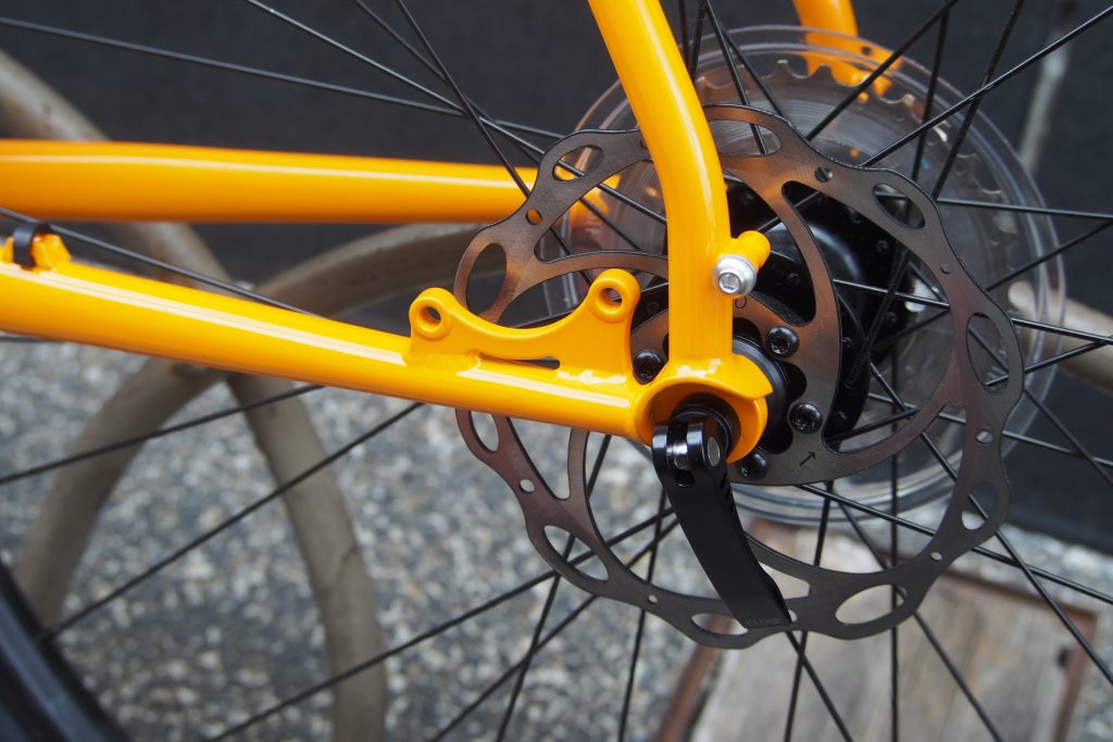 フロント、リア共にインターナショナル台座とし、リアはチェーンステーマウントなのでキャリアやフェンダーとも干渉しにくい設計が嬉しいですね◎