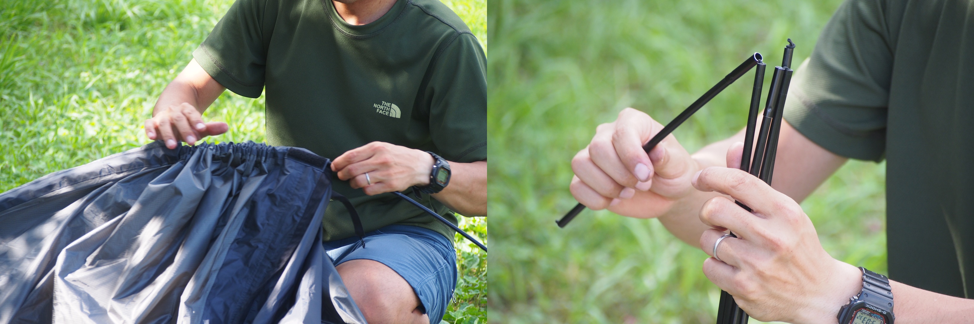 またタープとの組み合わせや、単なるシェラフカバーのようにも使えるので、状況に応じてフレキシブルに対応できるのも高いポイントです。