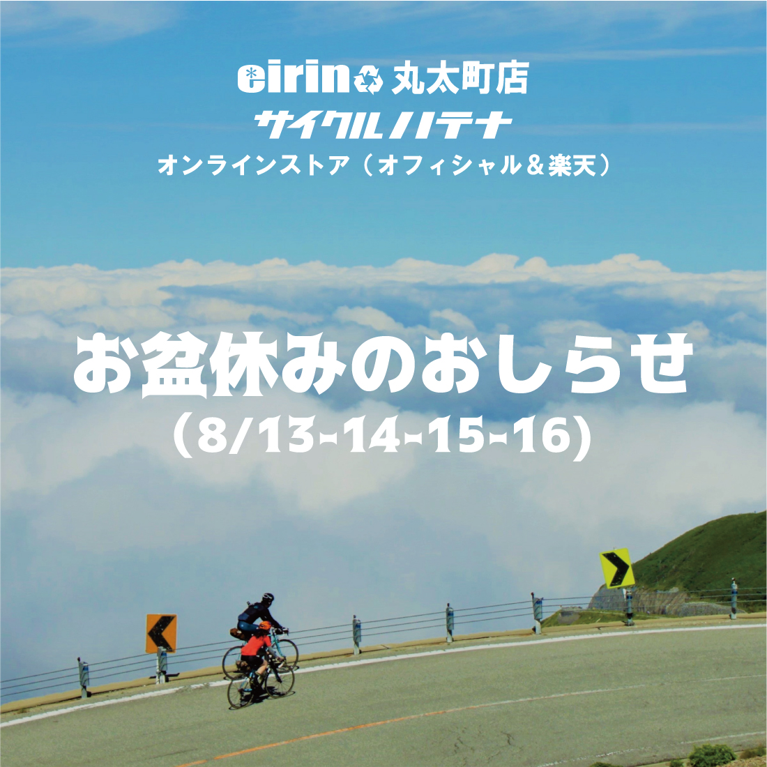 EIRIN丸太町店 & サイクルハテナ&オンラインストア(オフィシャル&楽天)「夏季休業のお知らせ」