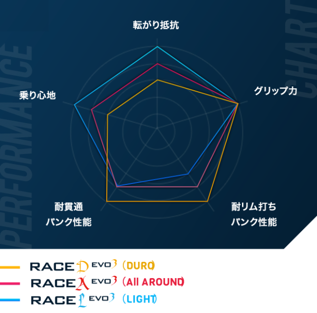 その辺りの理由は、当店でもオススメしております、かの国内最も有名なタイヤブランド「PANARACER」のグリップ力と耐パンク性能に優れたハイバランスレーシングタイヤの「RACE」シリーズでも、タイプL(軽量重視)、A(オールラウンド)、D(耐久、耐パンク性重視)とその3つの要素に合わせたラインナップをしている事でお分かりいただけると思います。