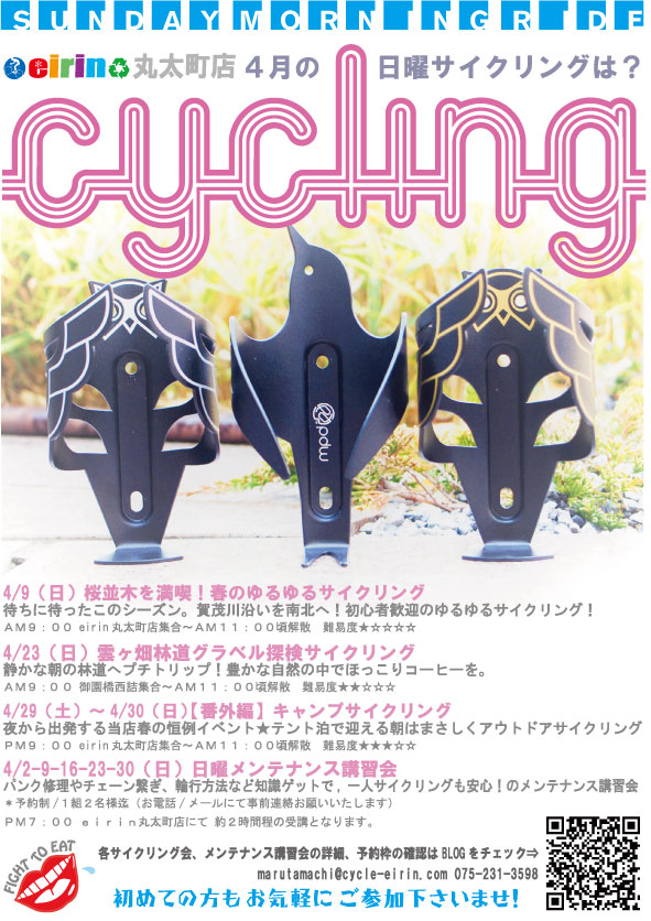 毎週、京都で開催のライドイベント!eirin丸太町店主催:4月の【日曜サイクリング】の御案内です!